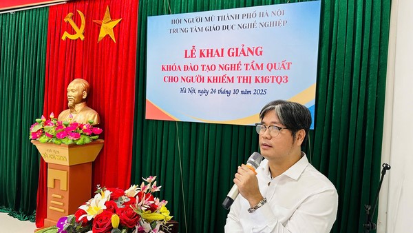 Phát biểu tại buổi khai giảng, thầy Nguyễn Trung Thái – Phó Giám đốc phụ trách Trung tâm – đã chúc mừng các học viên và khẳng định nghề tẩm quất là một trong những nghề mũi nhọn, phù hợp với người khiếm thị, giúp họ có cơ hội việc làm và thu nhập ổn định. Thầy cũng động viên các học viên nỗ lực học tập, rèn luyện để sớm trở thành những kỹ thuật viên có tay nghề, góp phần nâng cao chất lượng dịch vụ và khẳng định năng lực của người khiếm thị trong xã hội.